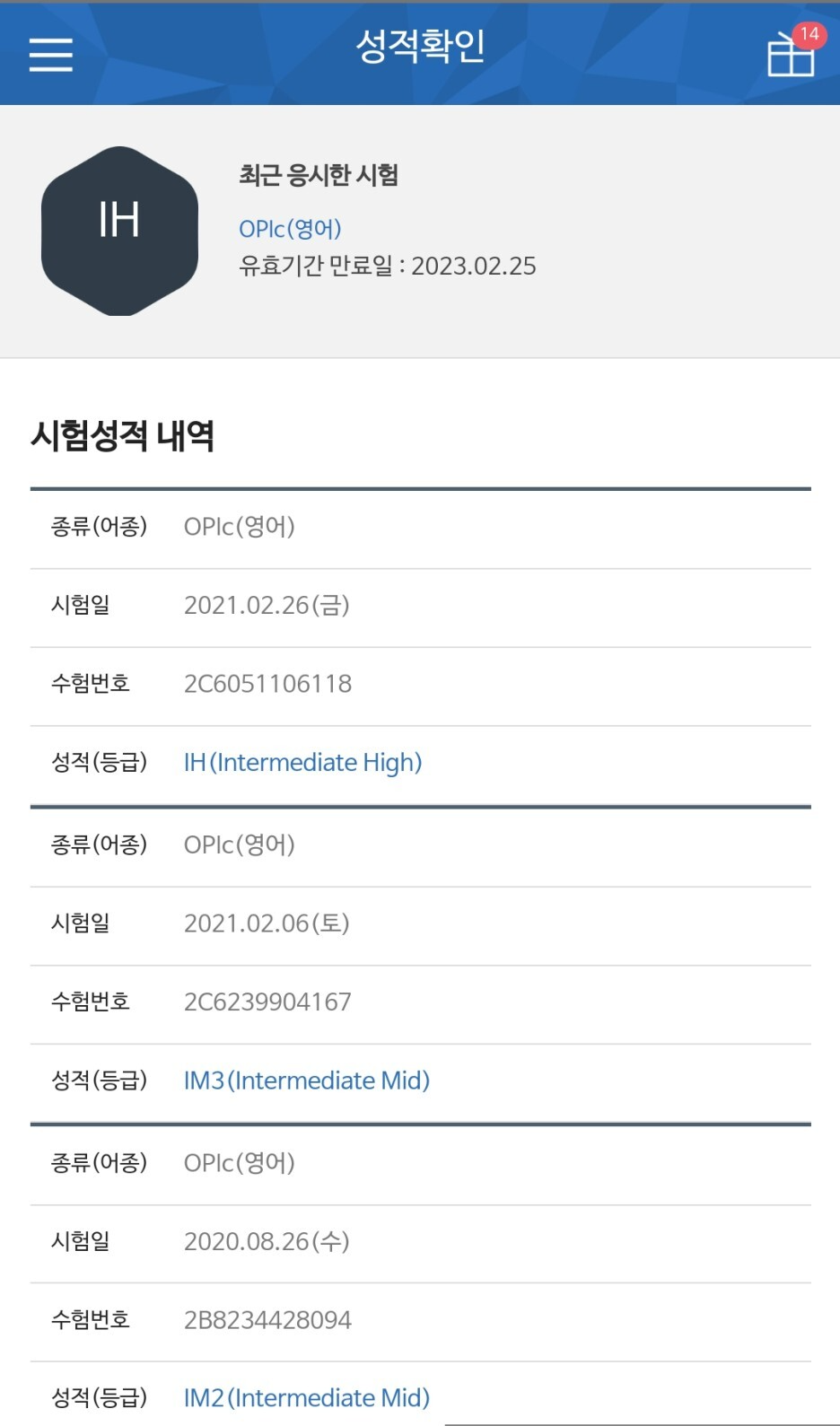정말 성실하게 IM2 - IM3- IH 로 단계가 올라갔다..(하지만 한 번 더 한다고 AL받을 자신은 없었음ㅎㅎ)