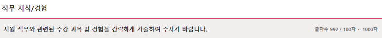 1. 지원 직무와 관련된 수강 과목 및 경험을 간략하게 기술하여 주시기 바랍니다. (1000자 이내)
