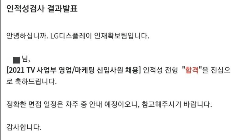 | LG디스플레이 신입채용 서류합격 후기 (TV사업부 영업/마케팅) (0) | 2023.10.30 |