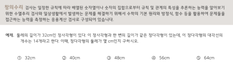 하지만 공식을 필요로 하는 문제는 실제로 많지 않고, 중학생 수준의 수학문제?가 나온다고 보면 된다.