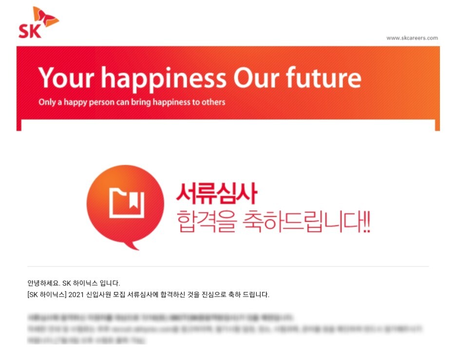 사실 SK가 가장 합격률이 낮았던 편이라 쓸게 없었던 것도 맞지만.. 아무튼 서류에 한 번 붙어본 적이 있었다..~